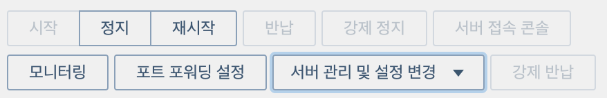 아! 서버 접속을 위한 최초 비밀번호는 하기 이미지의 '서버 관리 및 설정 변경 - 관리자 비밀번호 확인'과 인증키를 통해서 확인 가능하다.